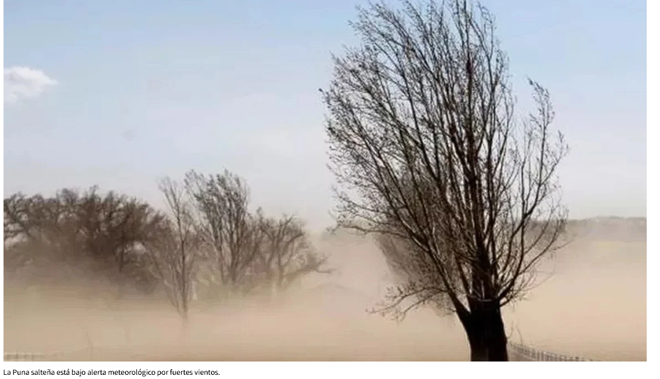 El Servicio Meteorológico Nacional (SMN) emitió una alerta amarilla por fuertes vientos en la región de la Puna de San Carlos y la Puna de Cafayate. Las ráfagas podrían superar los 100 kilómetros por